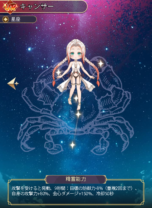 自身の攻撃力 +8%、会心ダメージ +150%。