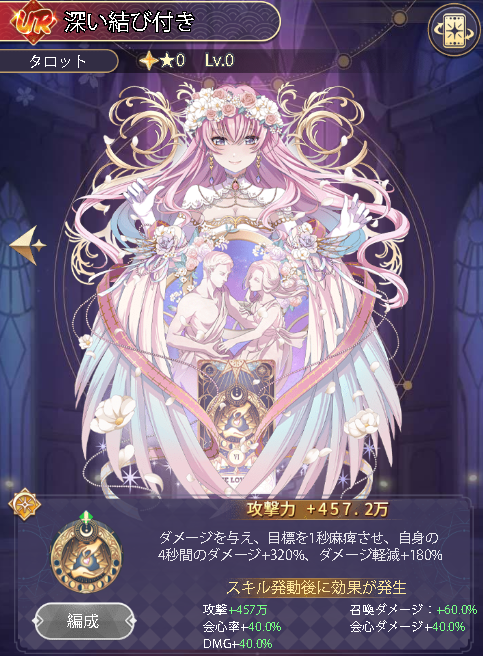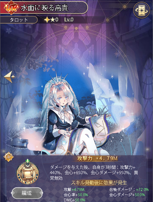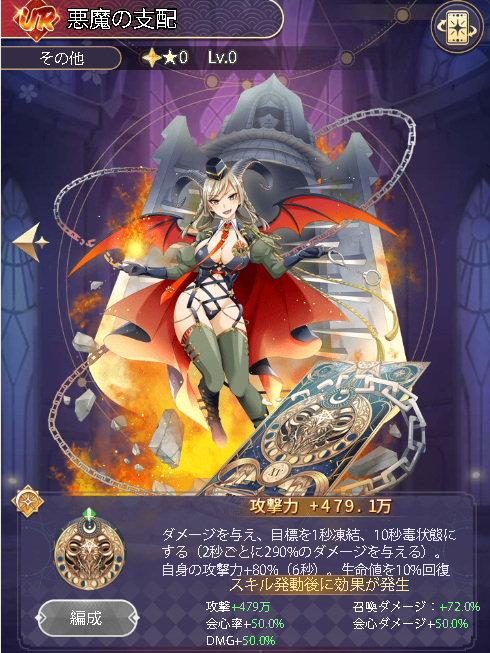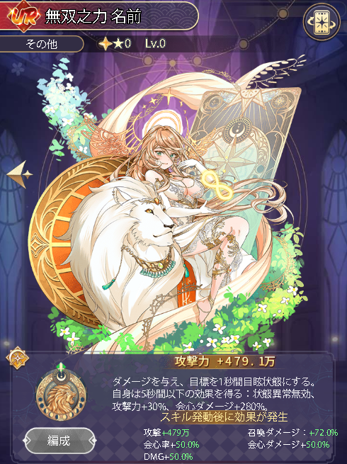 状態異常無効、攻撃力+30%、会心ダメージ+280%、