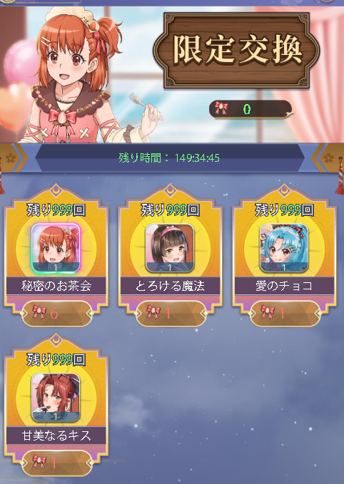 ガチャを引いて限定交換用のリボンを引く場所