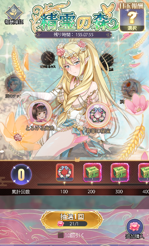 あとはガチャ券 (エルフの花冠を)手に入れガチャを引くだけ