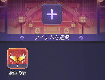 右上のところの?の選択に金色の翼をセット
