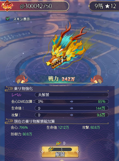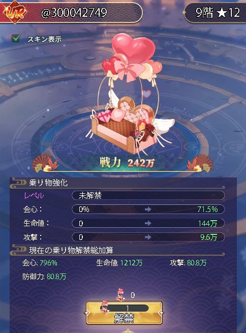 キャラの装備LVを450より上に開放まだ上限は不明550は確認確認