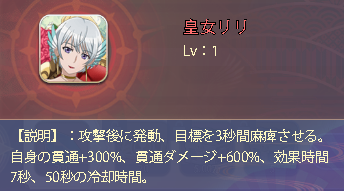 自身の貫通+300%、貫通ダメージ+600%、効果時間7秒、50秒の冷却時間。