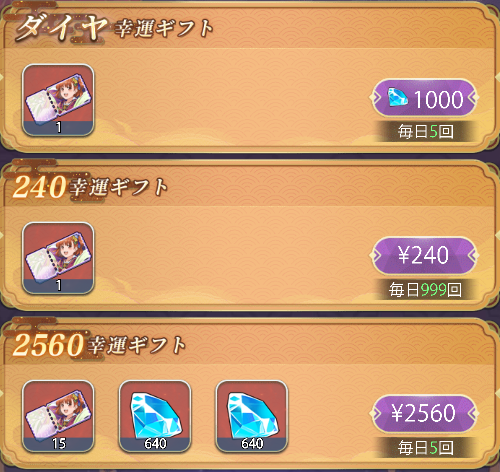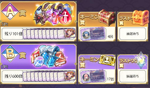 • プレイヤーが引いた報酬は「賞」と呼ばれます。