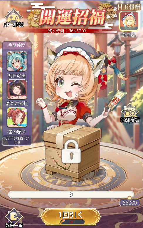 任務をこなすとそれぞれ福招の券のPTが1000p貰える