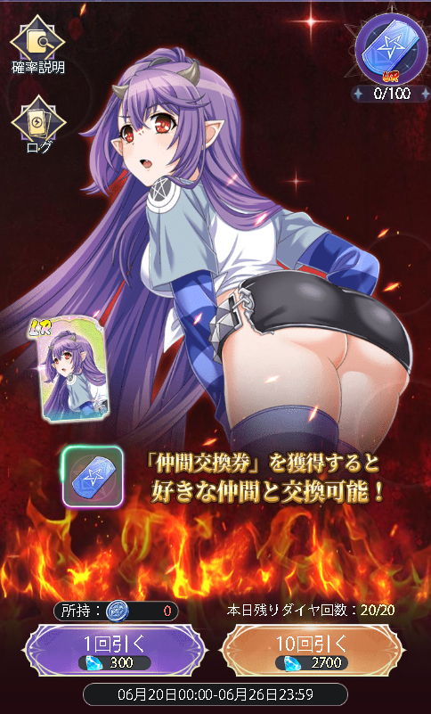 限定ガチャを引いた回数によって引いた回数に応じてダイヤが貰えます