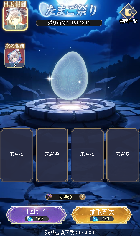 - 本イベントで召喚を行うと、通常報酬に加えて一定確率で色付きの卵を獲得できます。