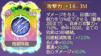 自身の攻撃力+150%、命中+8000、全ての効果は5秒継続。