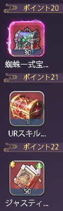 期間内に3個を揃えて合計が22以上でget (欠片の解放には50必須)