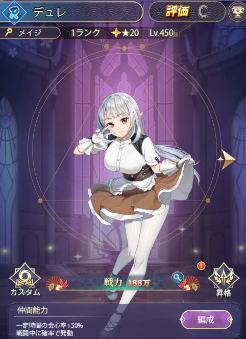 Rメイジ X 2024.05.192024.12.31 トップへ ブラウザゲーム 月が導く異世界道中 天下泰平旅日記 仲間トップへ 目次 R メイジR デュレR ウルリーカR アドノウ R メイジ 昇格石によって昇級は出来るが使用する量がどんどん増えていく 1= 10 2= 25 3=52 4=100 5=186 6= 7= R デュレ 一定時間の会心率+50% 戦闘中に確率で発動 R ウルリーカ 一定時間の会心DMG+80% 戦闘中に確率で発動 R アドノウ 一定時間の貫通確率+20% 戦闘中に確率で発動